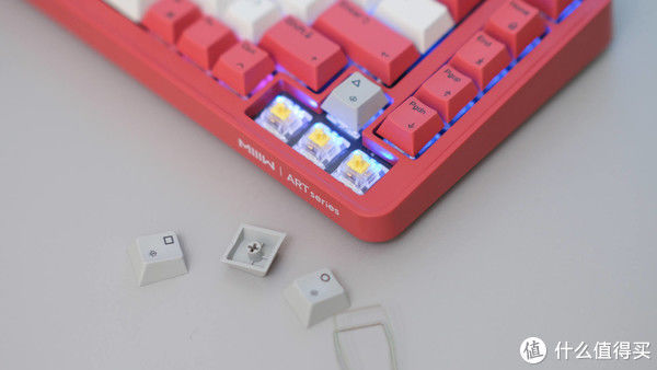 同时米物对 macOS 用户一贯友好,额外附赠的键帽,可以切换键盘布局,保持键值的一致性。