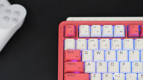 在键盘左上角有一排指示灯,通过指示灯可以查看设备连接情况,并且蓝牙支持三个设备连接切换;回报率数据方面三模均可达到 1000Hz,表现还是非常令人惊喜的。